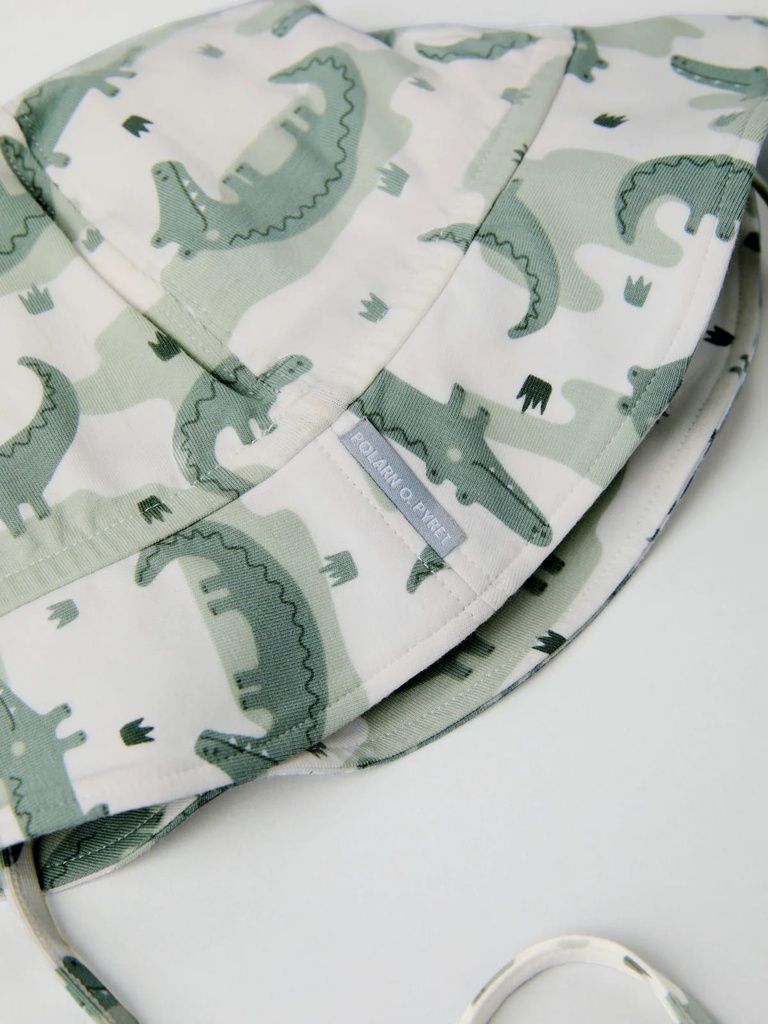 Einfach unverzichtbar an sonnigen Tagen: Dieser Sonnenhut aus 100 % Bio-Baumwolle schützt zarte Kinderhaut zuverlässig und sieht dabei auch noch richtig cool aus! Der fröhliche Krokodil-Print sorgt für gute Laune, während das weiche Bindeband dafür sorgt, dass der Hut auch bei Wind und Toberei sicher sitzt.