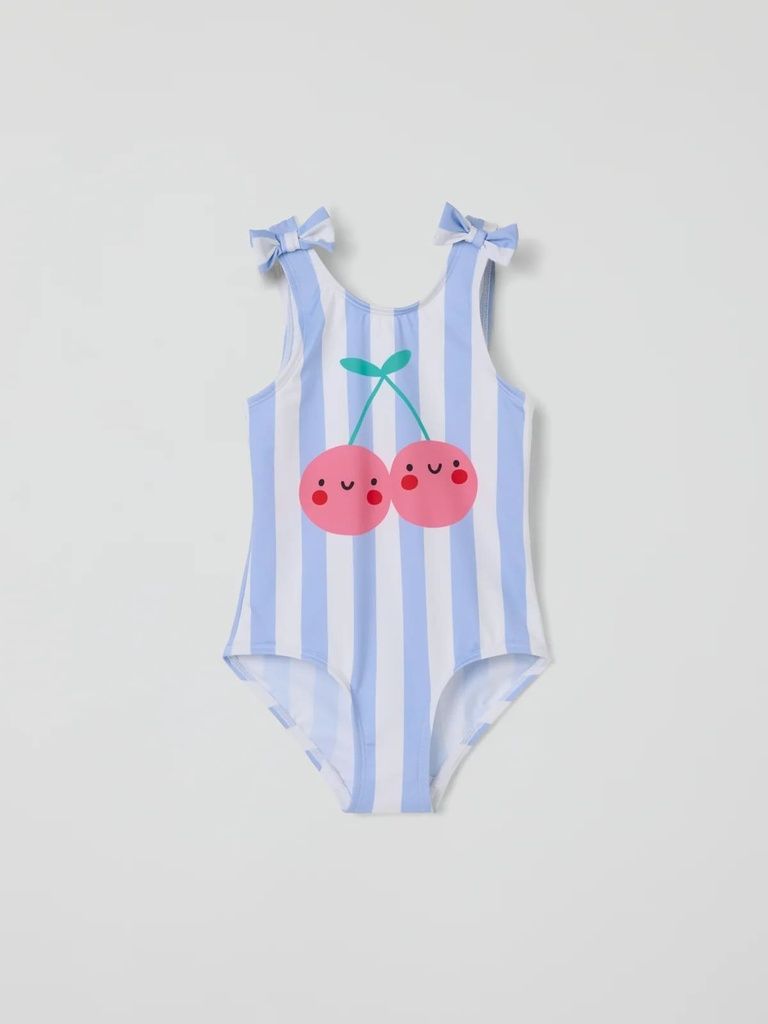 Bereit zum Baden: Der gestreifte Badeanzug aus weichem, angenehmem Material aus recyceltem Polyester sorgt für Spass im Wasser und höchsten Tragekomfort. Das grosse Kirschmotiv vorne und die dekorativen Knoten an den Trägern verleihen dem Badeanzug einen verspielten Look.