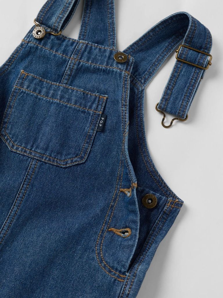 Die Latzhose aus weichem, leichtem Denim ist ein stylischer und praktischer Begleiter für Ihr Kind. Sie überzeugt mit geraden Beinen, verstellbaren Trägern mit Schnallen und seitlichen Knöpfen, die das An- und Ausziehen erleichtern. Die Brusttasche vorne und zwei Gesässtaschen bieten Platz für kleine Schätze, während Druckknöpfe im Schritt für bequemes An- und Ausziehen sorgen.