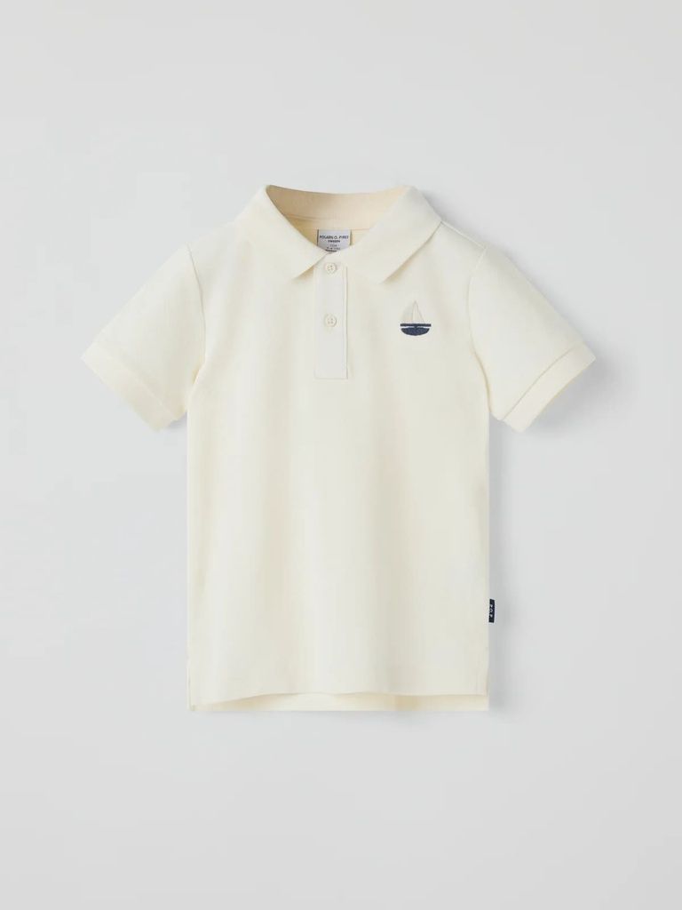 Polarn O. Pyret - Kurzarm-Poloshirt aus Bio-Baumwolle mit Segelboot-Stickerei
