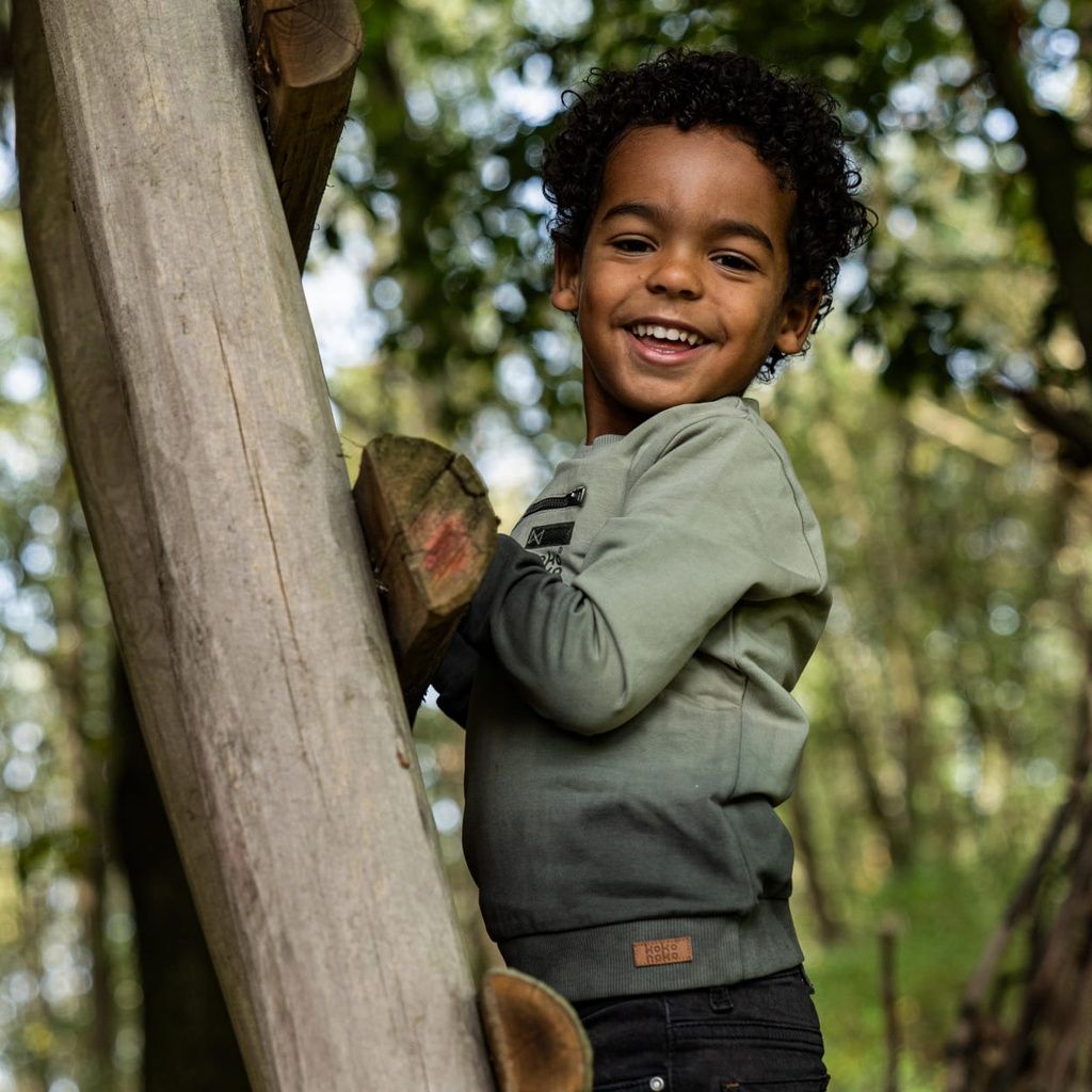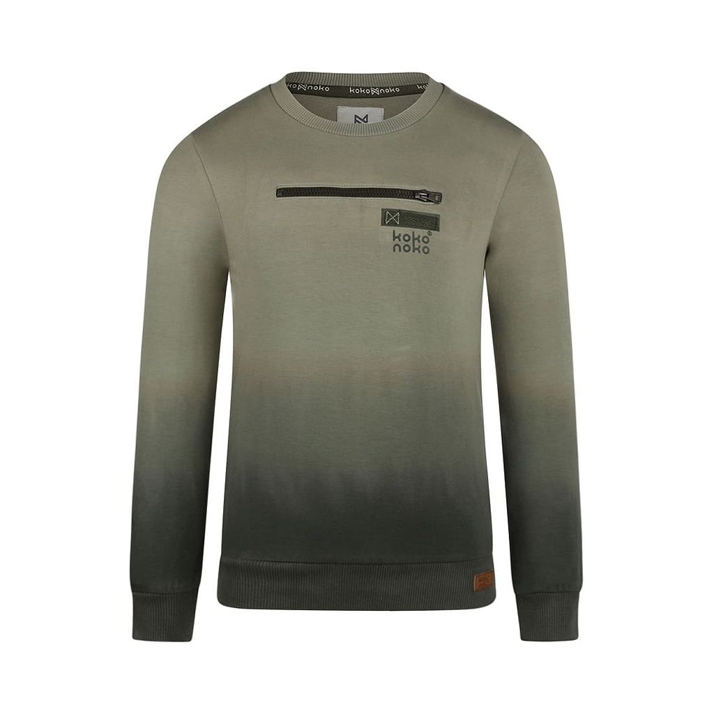 Hell- und Dunkelgrün. Der Pullover für Jungen ist mit coolen Details auf der