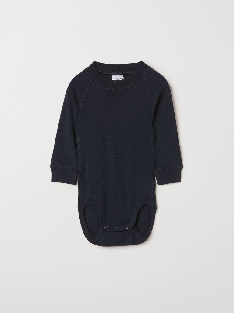 Langarmbody aus wärmender Merinowolle für Babys. Eine ideale erste Schicht unter dem Winteroverall!