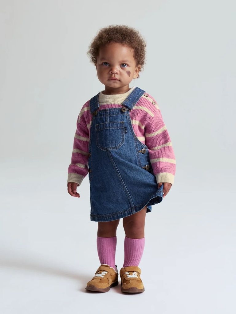 Dieses Latzkleid aus leichtem, weichem Denim ist ein echter Allrounder für kleine Mädchen. Dank der verstellbaren Träger mit Schnallen vorne und den seitlichen Knöpfen lässt es sich einfach an- und ausziehen. Vorn sorgt eine praktische Brusttasche für kleine Schätze oder Lieblingsstücke.