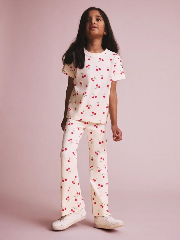 Diese klassischen Leggings aus weichem Bio-Baumwolljersey überzeugen jetzt mit leicht ausgestelltem Bein für einen verspielten Look. Bequem und flexibel sind sie perfekte Alltagsbegleiter, die sanft auf der Haut liegen. Der verstellbare Bund mit Knopflochgummi sorgt für eine individuelle Passform, ideal auch für süsse Geschwister-Looks.